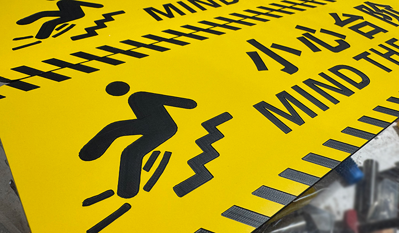 成都小心台阶标牌雕刻制作。采用黄颜色的双色板雕刻成的,具有警示提示标牌功能。